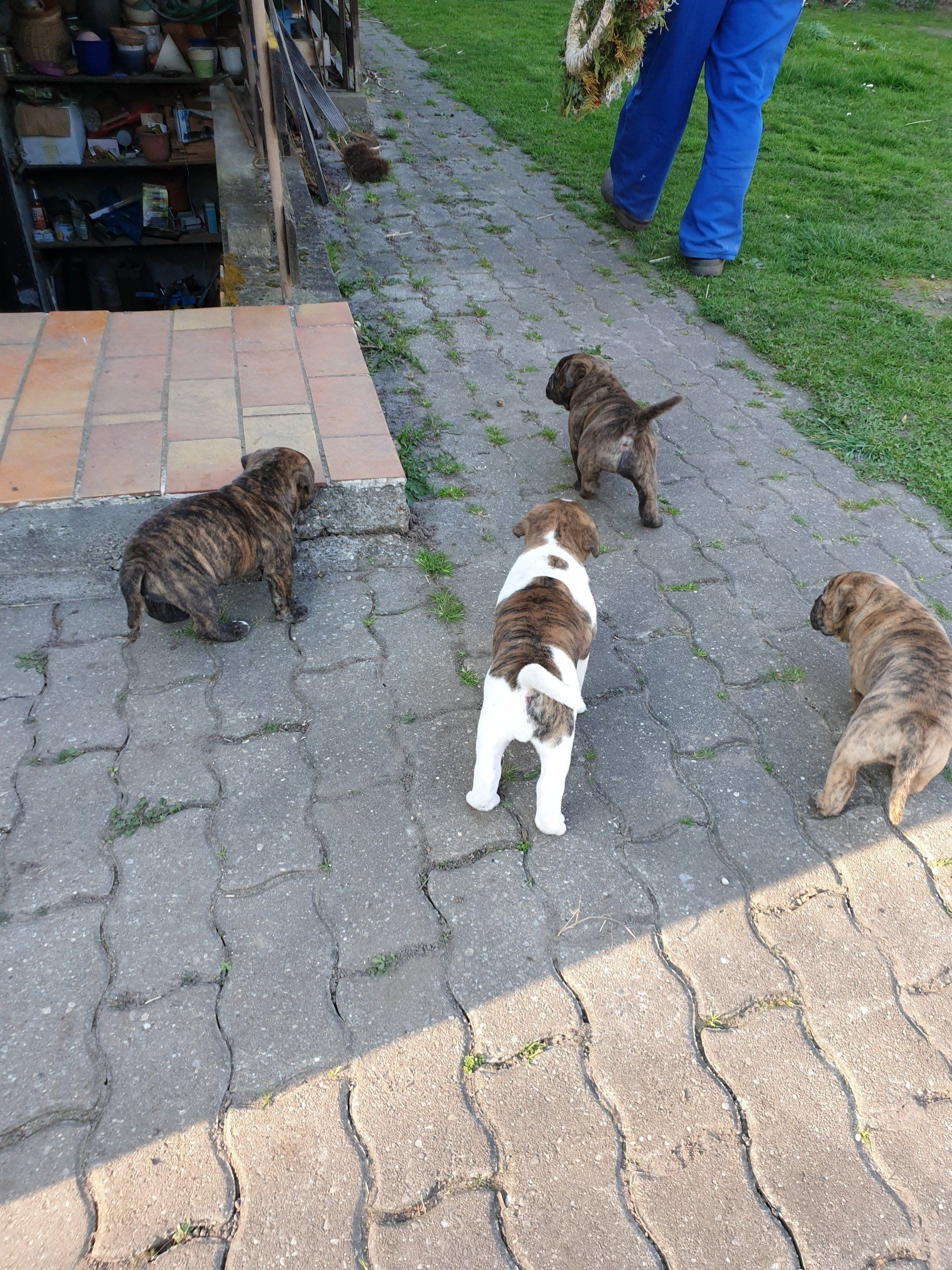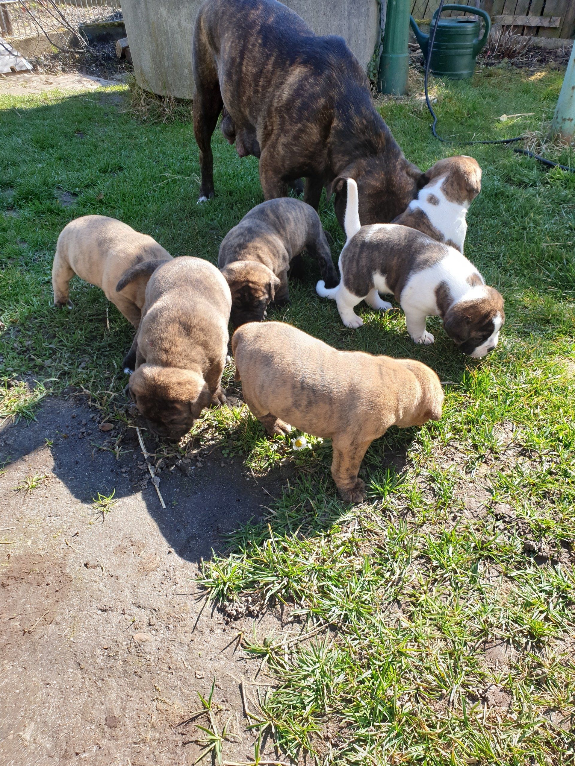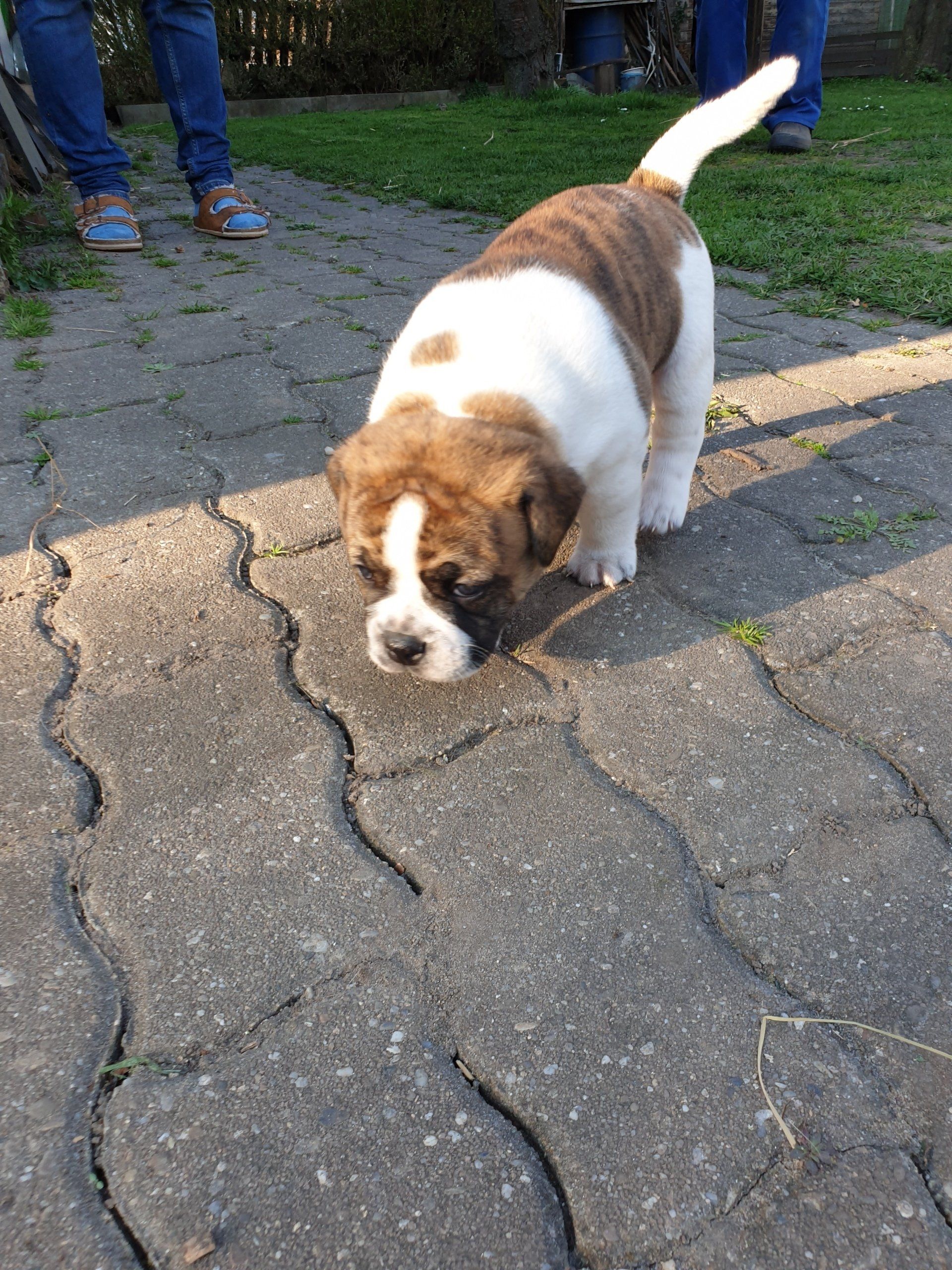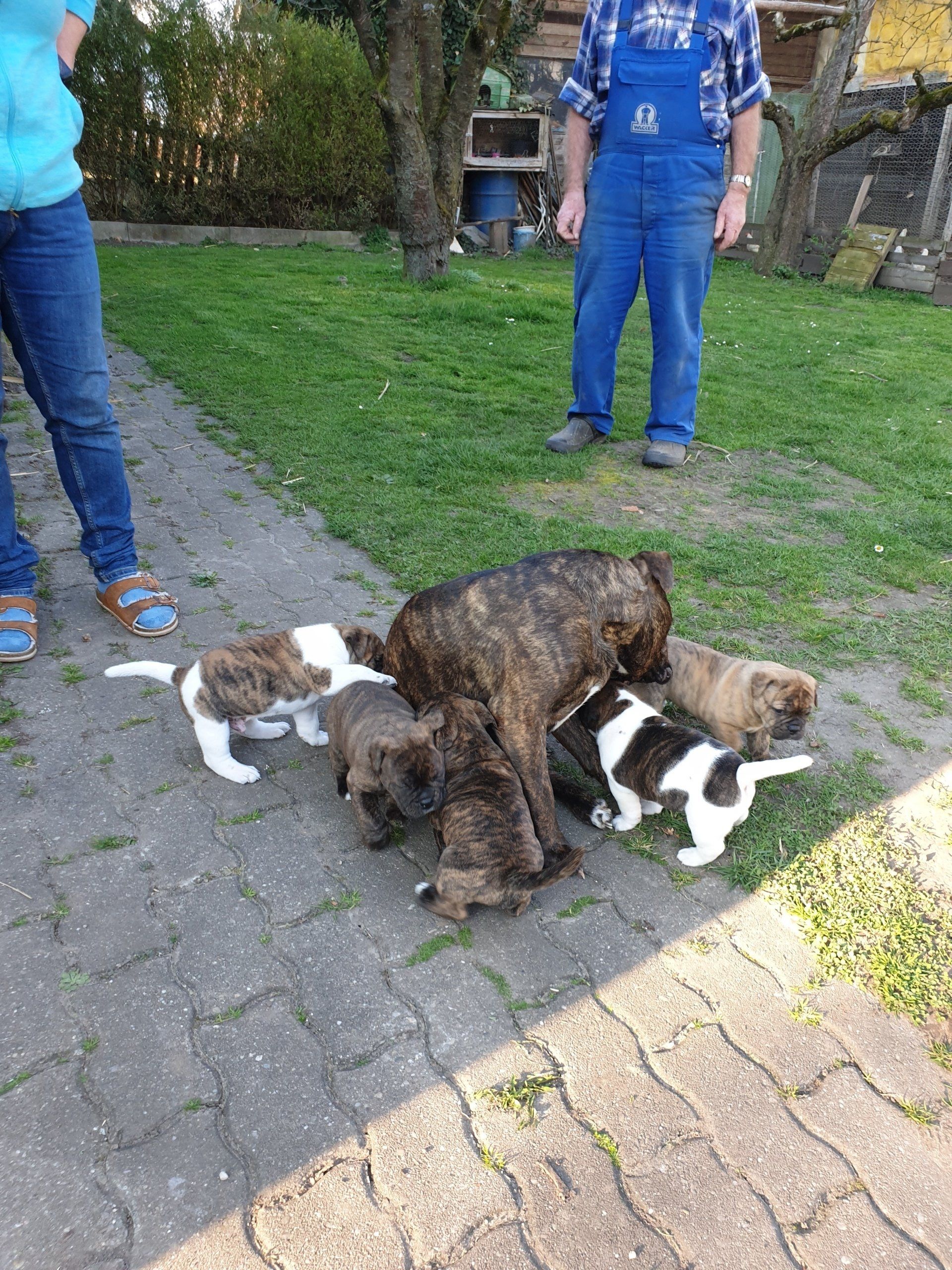 Es ist ein Rüde (braun-weiß) und fünf Hündinnen.