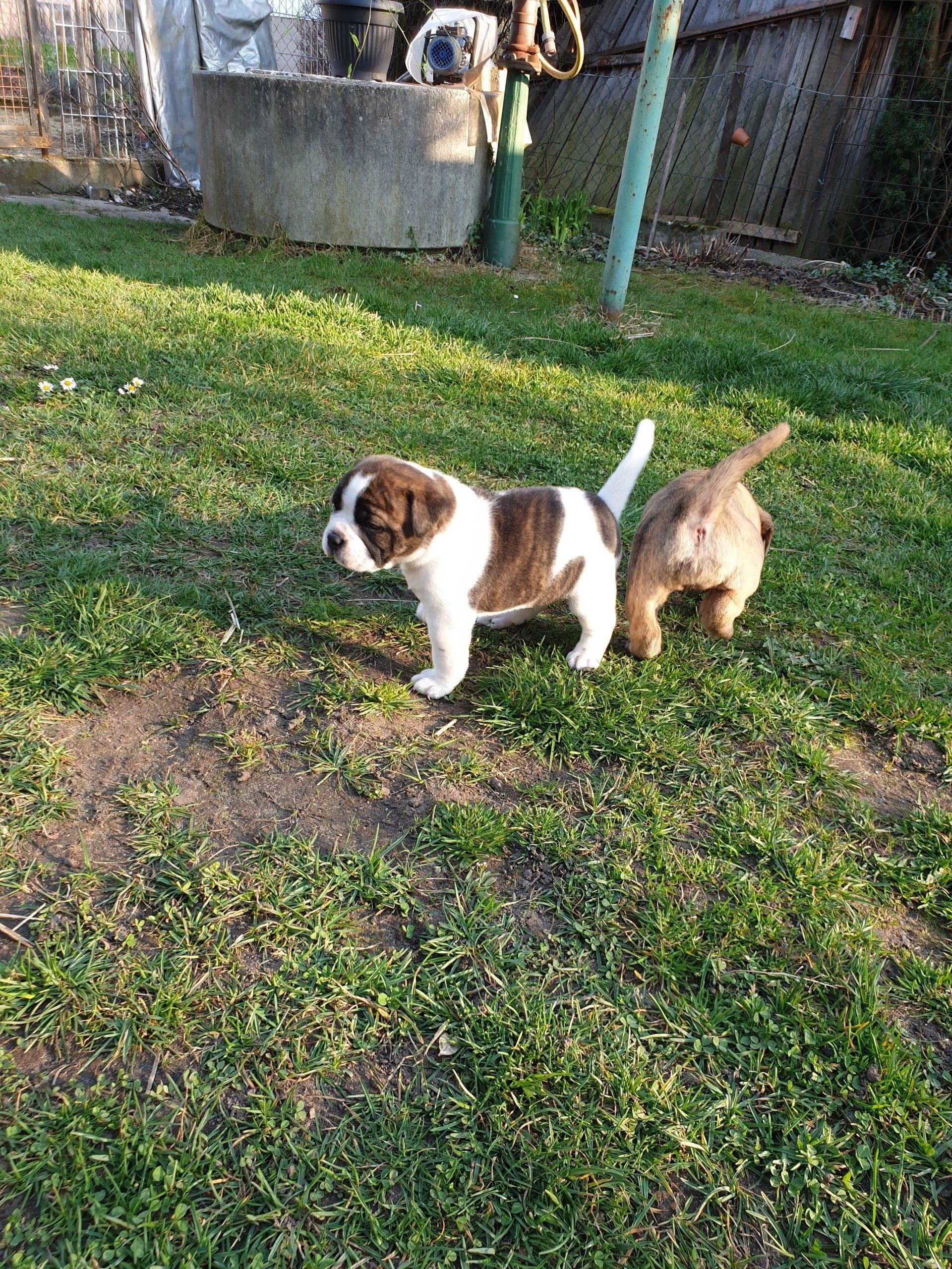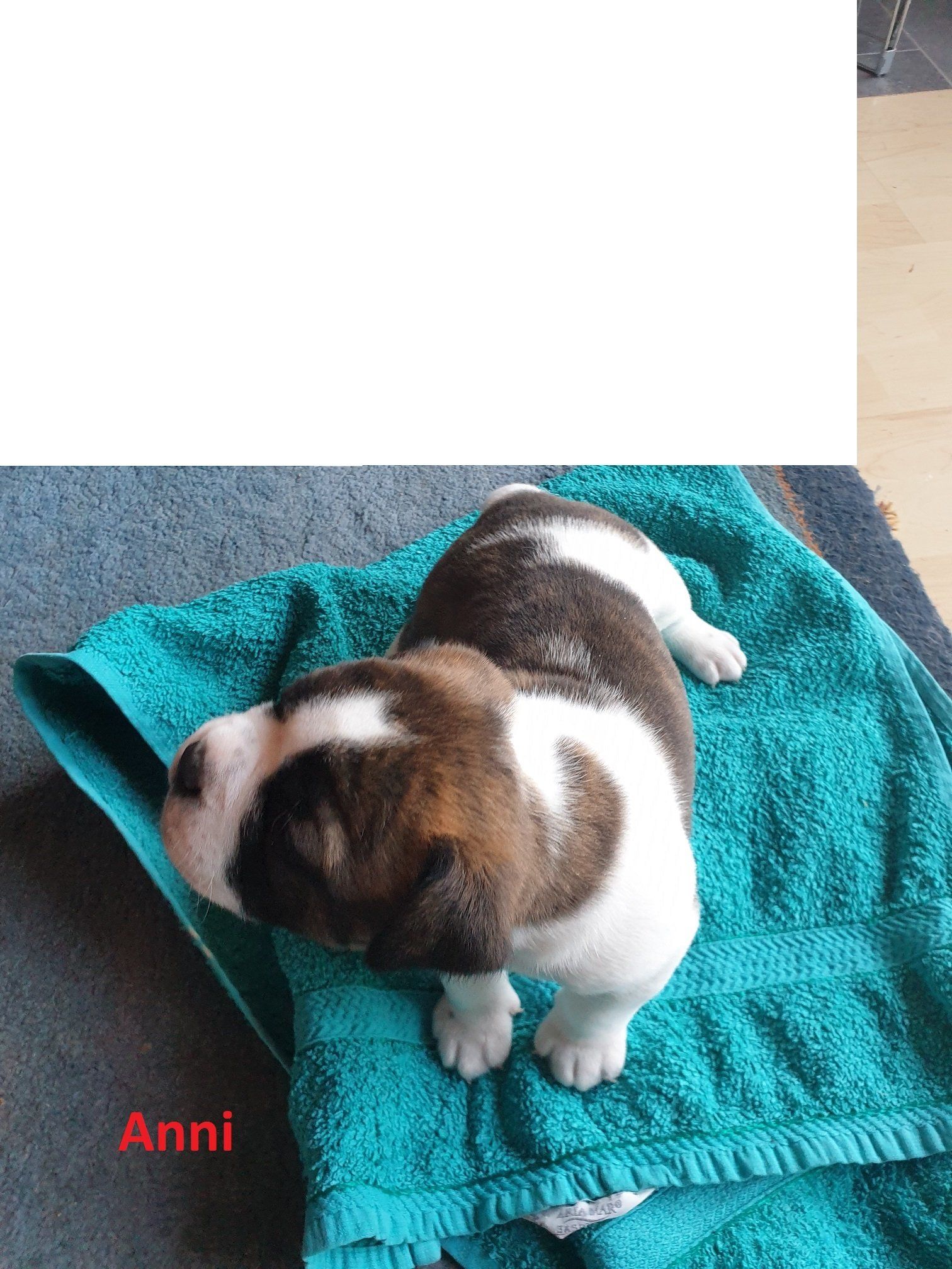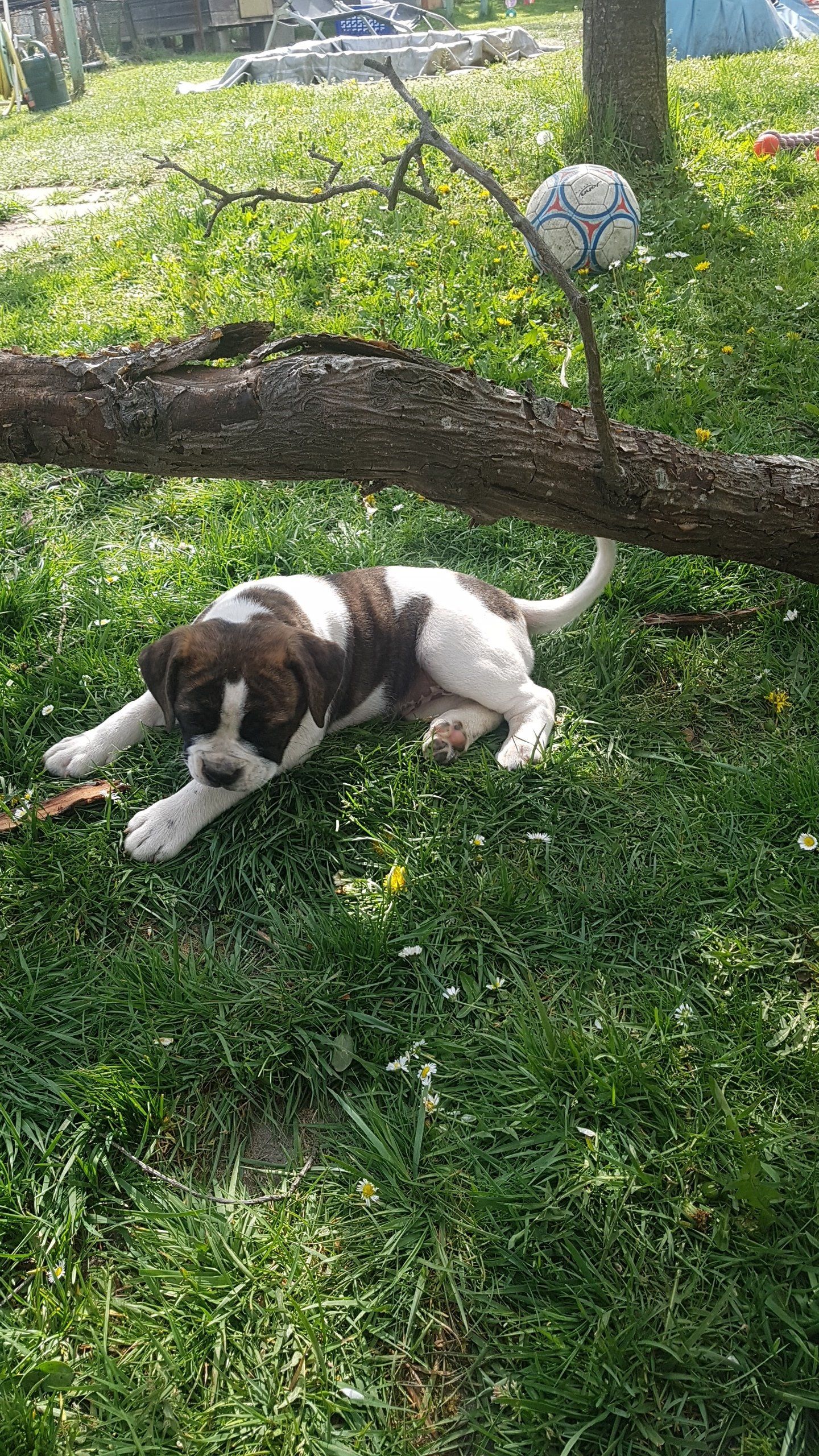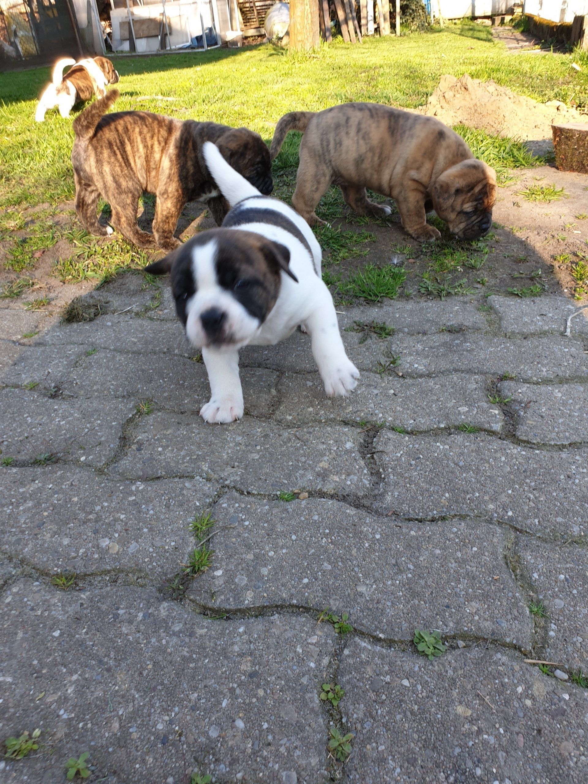 Es ist ein Rüde (braun-weiß) und fünf Hündinnen.