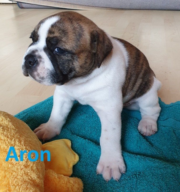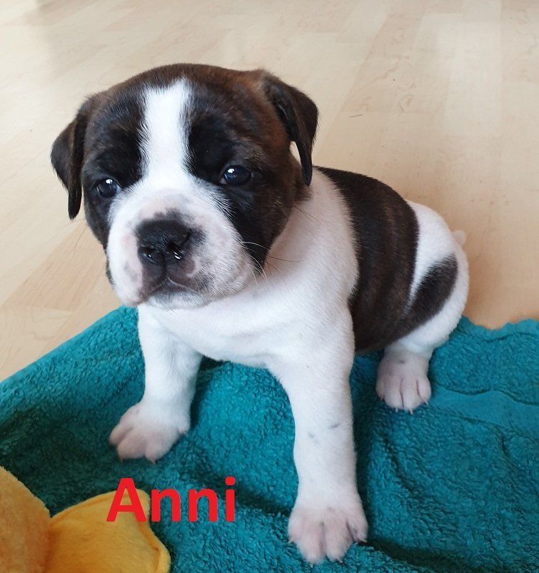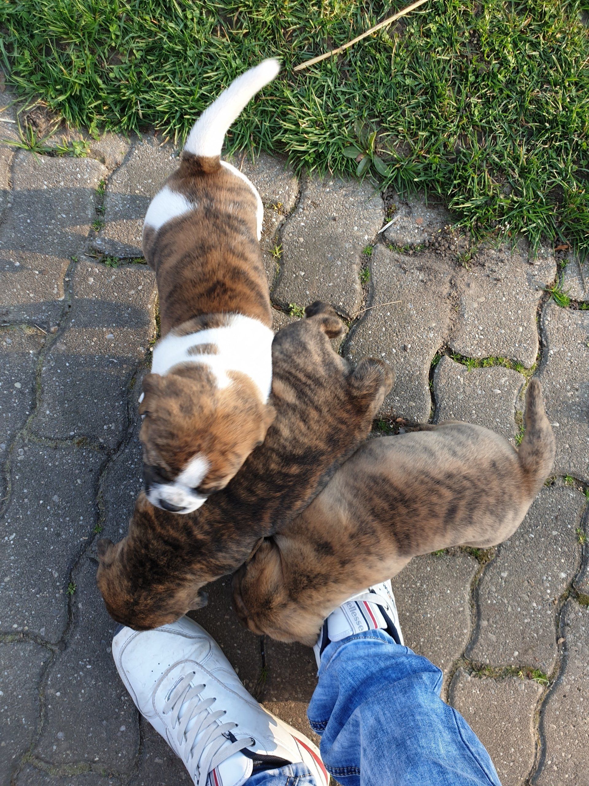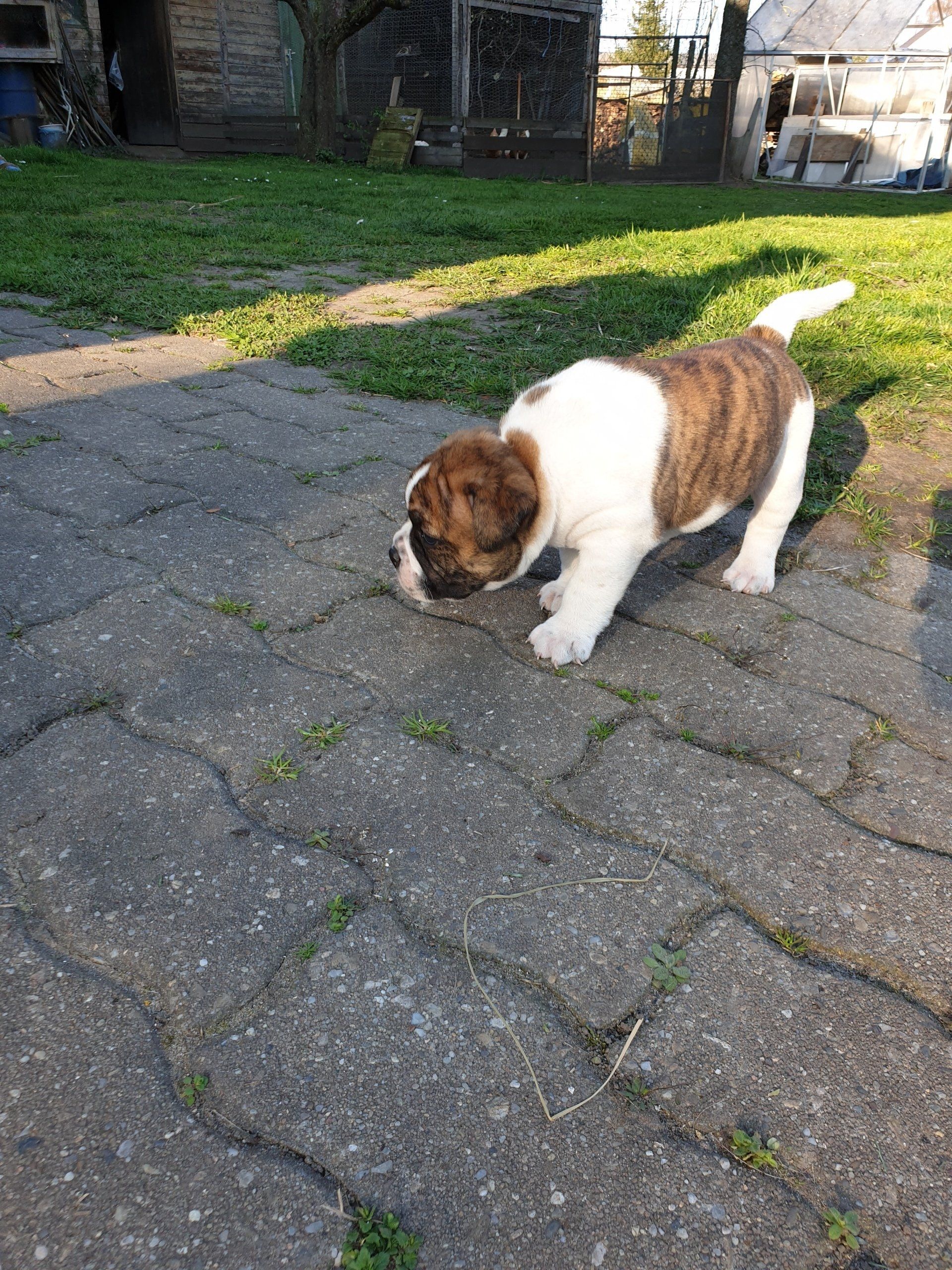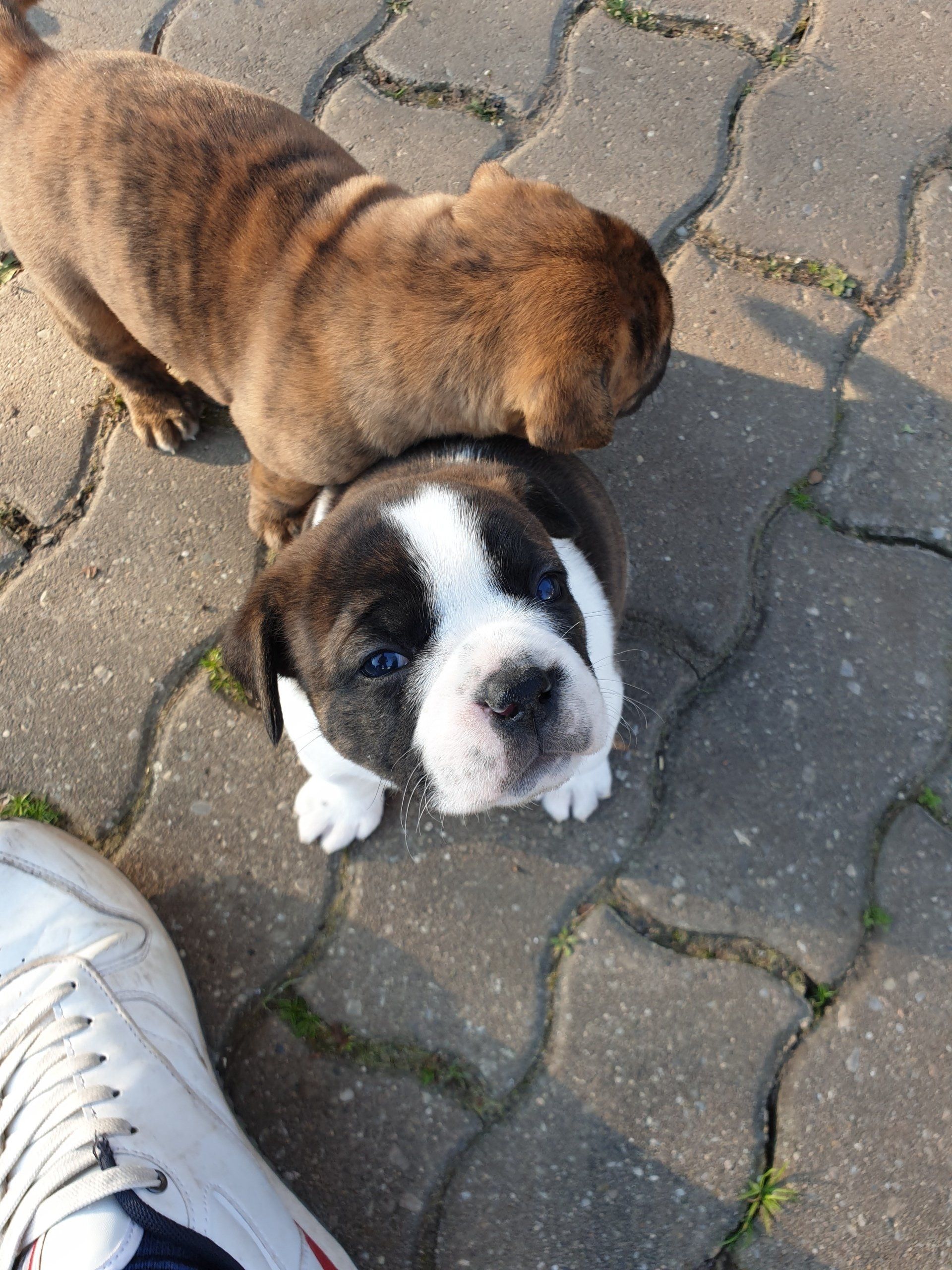 Es ist ein Rüde (braun-weiß) und fünf Hündinnen.